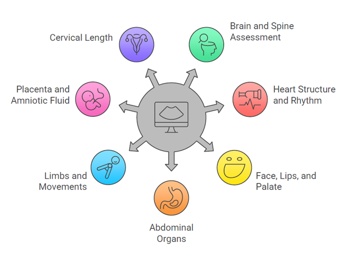 Unlike routine growth scans, this is a highly detailed examination that systematically evaluates every organ system.